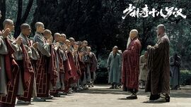 大和尚的慈悲本没有错,佛祖要普度众生,正是要在戒除贪嗔痴后放下执念,看到众生平等。佛说一念天堂一念地狱,没有绝对的善也没有绝对的恶。而出家人讲求的慈悲为怀,其实正是要去降魔,而非简单的伏魔。但是,显而易见,降魔要比伏魔难得多,而大和尚的失败,正是因为没能认清自己与敌人实力的差距,总想着渡化敌人,自己却没有这实力,所以显得很迂腐。我对大和尚深表同情,他具有了成为高僧的觉悟,可惜没有相匹配的实力。反倒是二和尚没有一点出家人的悟性,入了空门还不能放下执念,这些年的经书真是喂了狗了,你以为少林寺是军校吗?那是寺院!!!!!最后念念不忘的竟是报仇,冤冤相报何时了这么简单的道理都不懂还好意思说自己是少林寺的和尚!最后看似打成平局,其实少林寺输得一败涂地,输了战争,输了信仰。