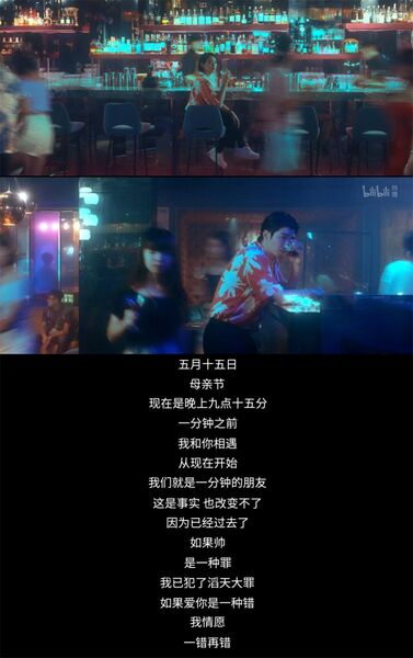 比如正在为“毒果冻案件”感慨呢,结果画风一转,开始致敬王家卫: