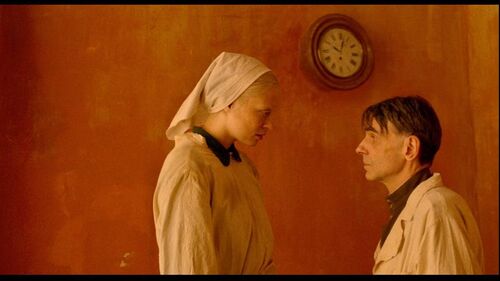 炮火不仅在伊娅耳后与身侧划下清晰可辨的疤痕,还留下如癫痫般不定期发作的后遗症。这成了电影在形式上的核心线索。它夺去她的神志,让她从身体中抽离,无知无觉亦不能自控,短暂地成为一只沉重的钟,咔嚓,咔嚓,咔嚓,无意识地数着秒。