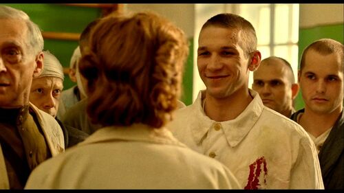 帕什卡把伊娅当作妈妈。伊娅曾是前线的高射炮兵,震伤复原后成了军医院的卫生员。电影开头一笔带过地呈现了军医院伤员与护士之间常被文艺作品描写的暧昧关系(斯捷潘与伊娅),这种半开玩笑的亲昵或许可以对伤员的心理抚慰起到积极作用。但镜头一直持续到两人的说笑结束后,斯捷潘独自一人的空洞眼神。那时他还没想过妻子会找到他。他除了面部之外,全身上下什么感觉也没有。他不知道自己能不能活下去,活下去的意义又是什么。在与妻子重逢之后,这种无意义的感觉只变得更强烈。临别前他为战争向妻子道歉,可战争哪里是他的错呢。