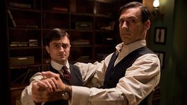 《一位年轻医生的笔记第二季》是由英国Sky频道开发的一部电视剧,改编自俄罗斯作家米哈伊尔·布尔加科夫(Mikhail Bulgakov)的短篇小说。该剧讲述了一战期间,年轻的俄罗斯军医尼古拉的故事。乔恩·哈姆饰演成年时期的尼古拉,而丹尼尔·雷德克里夫则饰演年轻时的他。剧集通过旁白的形式,由乔恩·哈姆以“口述回忆”的方式串联起战争期间他经历的青春岁月,与年轻的自己(丹尼尔·雷德克里夫饰)在多个场景中实现互动。这种跨时空的叙事手法虽然借鉴了《环形使者》的理念,但并非科幻剧集,而是作为一种文学表达形式来呈现人物内心世界和情感冲突。
