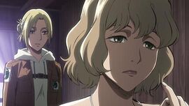 OAD6、7 Wall Sina, Goodbye(2017年12月、2018年4月随漫画第24、25卷推出)这两集是阿尼的故事,森林中大战女巨人的前一天,已经在希娜之墙东部卫城当宪兵的阿尼,一整天的破案全程。阿尼的打斗场面确实很吸引人,少女时代也很可爱。果然也是有缺失的童年。