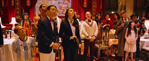 《唐探2》里有关于埃勒里·奎因、梅西等名人的桥段,无独有偶,《游戏之夜》也有关于名人的梗,比如特朗普、爱德华·诺顿、丹泽尔·华盛顿,但是这些笑话不会让人看了不舒服。