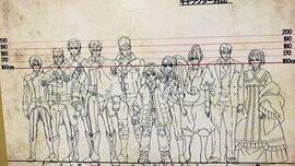 关于人物的体形与服装上的阴影,主要以伊藤老师的原案为基准,比如奥尔加、昭弘、西诺等看上去显得比较结实,三日月也同样来自伊藤老师原案给出的指示,和其矮小的身高成反比手脚显得比较大。