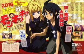 铁华团中另一位非常引人瞩目的角色要数“饼干”比斯凯特(左),从身材和造型来看都非常有《秘密战队五连者》中初代黄连者的感觉,当然我们更容易想到的是另一个戴帽子的巴武藏,千叶老师在设定的时候也特别把他往黄连者的位置——参谋担当的方向考虑,甚至FLAG也(…)。铁华团其余的角色也几乎基于伊藤老师负责的原案调整,有两位千叶老师的原创角色但丁与查德,然而千叶老师对查德这名字实在是摸不着头脑,“你让我设计一个叫查德的人,查德是谁啊”,最后设计出了个“好像是个叫查德的人”(笑)。但丁在设计阶段也是一头雾水,实际在动画中非常擅长电子战,这点还是千叶老师看了动画才知道的事。