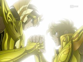 「前章」が2005年12月17日から、「後章」が翌年の2006年12月15日から先行放送され、各章とも先行放映翌年からDVDが発売された。クライマックスの黄金聖闘士12人全員集結の場面では、アイオロス役の屋良有作が19年ぶりに『聖闘士星矢』への参加となった