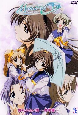 MO动画情节分割成三条线路展开,分别是唯笑线、诗音线和美奈裳线。彩花作为推动剧情发展的女主角,虽然已经不在现实世界中,但是却时刻闪现在记忆里,因而具有极强的存在感。无论是与唯笑的雨中告别,还是与诗音的图书馆结缘,或是与美奈裳的黄金海定情,智也都经历过相似的思想斗争,即背负彩花离世的重责与开始全新的恋情。正是在两难的抉择中,智也变得愈加成熟、坚强,成为值得大家依赖的人。从OVA叙事的节奏来看,有些情节显得牵强与急促,完全舍弃掉游戏原作的精粹。另外,音羽等重要人物未在动画中完全展现,不免让游戏党们大失失望。
