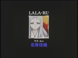 在这个世界上,Lala.Lu是个类似于神话一般的存在。虽然外貌如同小女孩,生命却已度过了数十万年。掌握着世人为之顶礼膜拜的操纵水的力量,本身却比普通的女孩更加柔弱。自1995年的EVA之后,动画界涌现出一批面部肌肉偏瘫的少女。可是这个形象用在此处却是毫无斧凿的痕迹,或许唯有经历了如此漫长的岁月,才有资格对一切感到厌倦和冷淡吧。此时此地唯一能够吸引Lala.Lu的,只有静静注视着夕阳,享受这亘古不变的美景的一刻。