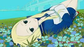 《荒川爆笑团》也曾一度被认为是很难动画化的漫画,而一大半被盖上了“动画化不能”标签的人气原作,大抵会被送到新房昭之那里进行粉碎性处理。新房昭之又是个以电波出名的监督,个人风格浓烈,对比鲜明的亮丽色块、迅速闪动的捏他字幕与时不时插入的无意义诡异镜头,都为新房出品打上了毒电波的记号。说他是坚持特色我行我素也好,手法千篇一律审美疲劳也好,总而言之,新房昭之都已以辨识度极高的做派与过劳死预备役般的高产成为了当下最炙手可热的名监督之一。《荒川爆笑团》正是两位电波之神碰撞出的灿烂火花。新房的风格一向适合搞怪,却不太擅长拿捏笑点,动画版现阶段的表现尚算得上不过不失。像漫画一样采用了速战速决的小短剧模式,除了新房招牌的电波静止画与萌点满载的OP外,分镜几乎完全照搬原作,电波的毒性降低了不少,可见中村光的原作已经强大到连粉碎机都无从下手破坏的程度。《荒川爆笑团》的本色就是不用什么下捏他也能维持轻松愉快的氛围,大智若愚,灵气逼人,即使由新房接手,也不必费力考证捏他、消化宅气。只需要静下心来听听吐槽与冷笑话段子,看群魔乱舞的电波笨蛋们像小学生一样耍宝犯蠢就足够了,在最无防备的时候,笑闹中最接近朴素真谛的场景才更容易直抵人心。