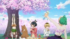 这个架构也被用在Punch Line上。其实在第一集中就有好几次轮回。男主(?)的幽灵存活是True End的必要条件之一。只要因为喷鼻血暴死,注定只会走向Bad End。事实上,并非男主一喷鼻血就会立刻世界末日。但通过画面剪辑的误导,让观众误会产生“男主看到小裤裤就会导致地球毁灭???WTF”这样的感想。从第二话到第六话是一个轮回。幽灵经历了12月21日到12月31日的11天,了解了部分真相,明白了自己真正的使命。从第七话开始是一个新的轮回。男主为了保持世界线不偏离,一边触发着历史上曾发生过的事件,一边想办法拯救世界。