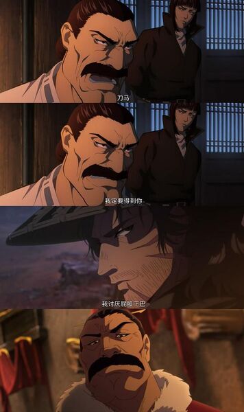这里我选了两组个人特别扎眼的地方,1是阿育娅欲刺人贩子的桥段(右),面部的杀气和构图方面戊说何者的气势更强;2是常贵人被吐槽下巴时的表情(左),简单的一个大小眼表情、动画居然只用一张2秒不到的静帧表达,甚至表情完全不对号诸如上面这些,对比动画、原作简直是降维打击的案例,光前2话就让我典到了饱腹,不过也没必要多做赘述。此外我真心不认为一直把 “天下熙熙皆为利来,天下攘攘皆为利往” 象陈词滥调一样注进进歌词和Eyecatch是个好点子,主题不是挂在口边,通过深沉情感和文学气质才是这句话最有力的表现。只希望PV中竖的一战别是全剧最烧成本的地方,不过个人对之后会更持悲观态度。