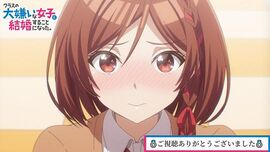 【含有剧透】《我决定和班上最讨厌的女生结婚了》作品评价如下:简介:樱森朱音(cv: 矢野 妃菜喜)是北条才人(cv: 坂田将吾)在班级里最讨厌的女生,两人好比天敌一般。但在双方长辈的威胁下,男女主不得不结婚,他们能否好好相处呢?观前须知:本作品的部分台词、画面和情节可能会让观者产生强烈不适,请根据自己的年龄、心理状况和三观进行选择性观看或不进行观看。优点:1、画面风格普通,表情包(人物面部夸张&Q版人物形象)使用频率极高,片头片尾动画会随着剧情发展而产生变化(或者说解锁更多内容)。视觉体验优良。2、由=LOVE组合演唱的op 《恋人以上、好き未満》&由女主角们的声优们演唱的ed 《スキキライも追い越して》,都是比较热烈的情歌,都完美契合主题。3、主角团,即:坂田将吾配的北条才人、矢野 妃菜喜配的樱森朱音、铃代纱弓配的石仓阳鞠、稗田宁宁配的北条糸青、前田 佳织里配的樱森真帆,塑造得非常优秀。其他角色也塑造得很优秀,令人印象深刻的角色有:大塚芳忠配的北条天龙、平野 文配的樱森千代、結川あさき(译名不统一,所以不译)配的北条留衣、榊原良子配的北条丽子、铃木爱唯配的朱音的母亲、胜生 真沙子配的北条 静。缺点:无明显缺点。个人评分:96.5分(百分制)中日字幕op完整版地址:【中日字幕/OP完整版】和班上最讨厌的女生结婚了 OP「恋人以上、好き未満」=L... - b23.tv以上