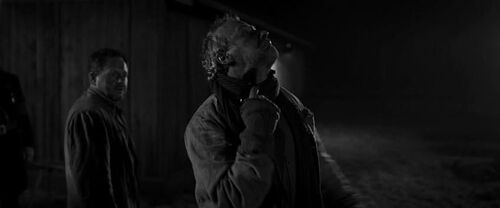 他们中的一个,在经历了一阵短暂的颤抖之后,便坚定的向自己的同胞射出了罪恶的子弹;而另一个,却在短暂的瞄准之后将子弹射向了旁边的空地,然后举枪自尽。这段戏虽然只有不到一分钟,却给我带来了很大的触动,因为在这里我们可以看到,人之所以为人而不是畜生,就是因为我们可以选择不作恶,哪怕这种选择的代价是自己的性命。那些用伟大理由来给自己作恶找借口的人,全是披着人皮的畜生。