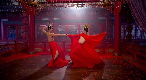 这个漫天飞花的霸气亲吻,很有“村长家大妞子穿着新做的花布褂子强吻村头穿红秋衣的杀马特傻小子张小二”的感觉,金马女主都掩盖不了。