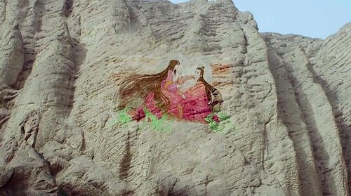 本剧一开始,就是将军女主割下敌人狗头,凯旋班师回朝。虽然将军有一点呆萌傻大姐的范儿,但是不要在意这些细节,谁规定将军都得是英气勃勃?李元霸不也是呆萌少年吗?嗯所以就当这位女主是性转李元霸好了。在李元霸胜利回朝的路上,苍茫戈壁上出现了一幅远古壁画: