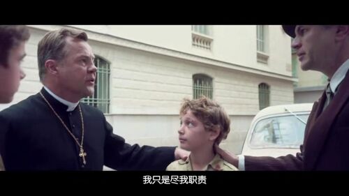 在这样一个场景里面,依然有人性的光辉,就是医生帮着他们证明他们不是犹太人,可是可恨的德国军官,却不轻信这一套,依然需要让哥哥来证明他们是哪个村庄的人。所以就有了后面神父的帮忙。