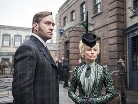 第一集火车脱轨案的主谋是医生杰克逊的妻子苏珊以及她的个人律师卡普肖,他们为什么要这笔不记名债券呢?前两季中,苏珊曾是一个经营妓院的老鸨,只是后来她再也不想过那样的生活,他希望白教堂这些可怜的女孩得到一份更得体的工作,所以她要投资弗瑞恩医生的医院;而卡普肖呢?他是个十足的恶鬼,阴险狡诈,利益至上的律师。