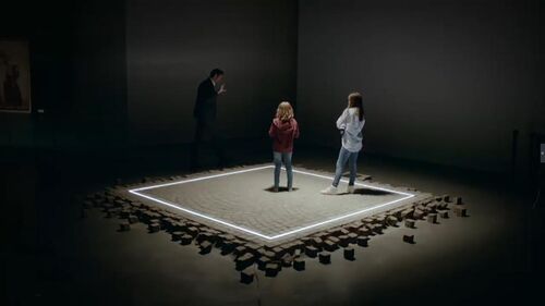 有人来告诉馆长,他们的作品A被清扫车碰坏,需要联系保险公司;Christian立即阻止,要求同事不要声张,关闭展览,晚上按照片复原。