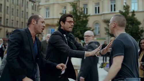 1、Christian上班路上在某广场遇到一个碰瓷团伙,当Christian面对未知威胁,在全员漠视的人潮中试图伸出援手时,“求助者”掳走了他的手机和钱包。