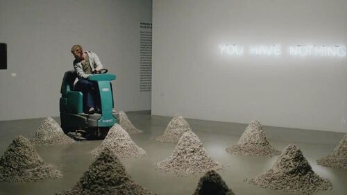 你看,一个相信艺术品只有在博物馆里才有价值的馆长,竟然试图让展馆里的作品,走出博物馆获得全民关注。然而,他的采访里并没说错,艺术品一旦离开博物馆,就什么都不是了——影片开启失控模式。