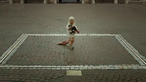 10、这时,博物馆外聘的小视频组合做出来的宣传片儿在YouTube上火了。外宣公司的宣传方案是,让一个五岁的金发小乞丐抱着布娃娃走进这个方块,并在这个方块里被炸得粉碎。