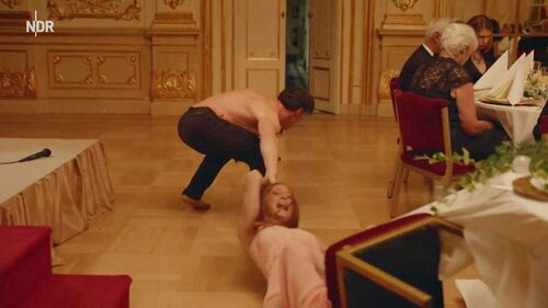5、虽然发邮件那晚的经历极其不快,Christian的钱包和手机竟然完璧归赵。极度欣喜的Christian在博物馆的派对上疯狂作乐,随后和那位采访过他的美国女记者回家。在她的家里,极其荒诞的场景出现了:一只兀自走动,假装没有看到他们,坐在客厅里画画涂口红的黑猩猩。