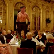 “大猩猩”用一个失控的表演,成功地把现场的“高雅人士”统统拉下文明的神坛,返回兽性的森林。现场爆发一段众多礼服男围殴异端分子的“粗鄙行为”。