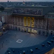 《魔方》是贯穿电影始终、一直在包装宣传层面还未正式开放的重要展览,除了博物馆里的展厅部分,还有广场上的公共艺术作品。为了“布展”也就是将“方块”安置在广场上,电影开篇推翻了一座中骑士形象的雕像作品。