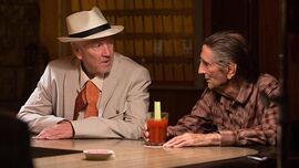 影片毫不晦涩的用美国历史为故事镀了一层老派的韧性,内在探讨的实质却是自由等量齐观的价值。片中客串的大卫林奇延续了自己荒诞的风格,在独白中讲述了一个对自己人生产生影响的宠物乌龟罗斯福总统的“越狱”故事 。在这种看似荒谬好笑的命名及事件下,隐藏着一幅40年代初寻求自由的美国风情画。作为一个仍在经济恢复中的多元化民族,美国人民在德意日对内外种族,太平洋军事的压力下,一反一战时期对于民主安全的中立言论,打出了为了人性自由而参战的口号。影片以二战元素为时空跳板,从一个追求自由的国家到曾经为之而战的老兵,最终抵达的是人心。这股在生命的重量下跳动的精神才是真正支撑影片的龙骨。个体自由观念承载着具有历史性的集体经验, 在电影的放大镜下被解剖分解。 而让一个在电视采访都叼着烟的老爷子来通过吸烟打破酒吧传统,诠释自由与灵魂可能再合适不过了。纽约时报对其关于无灵魂的演讲也是赞不绝口,考虑到这是一个出自一辈子都在演着拥有鲜活灵魂人物的演员之口。