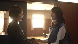 讨论结束后,镜头转到放学,岩崎楓出现了。理所当然地,继续和早濑菜绪讨论开除特训班话题——