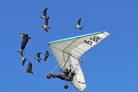 现在,已经 59 岁的 Moullec 大爷依然在为自己的候鸟孩子们领航,为了让人们参与保护候鸟的行动,每次领航,他都会带上一名游客,在让游客体验 " 伴鸟飞行 " 的快乐时,也为宣传候鸟的保护尽多一份力量,让人们参与到保护候鸟,停止伤害候鸟的行为。