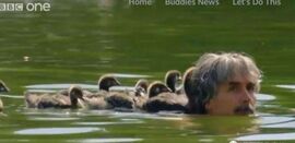 原来,某些鸟类有个" 印记效应 "的天性,那就是破壳而出见后到的第一个活物,会被它们认定为自己的母亲!