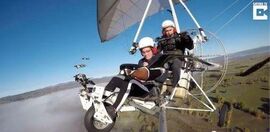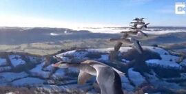 他开始试着驾超轻飞机带小家伙们飞翔,一开始,小家伙们有些踌躇,但很快就一个接一个地飞上蓝天了,它们排成固定的队形,紧紧跟在 Moullec 的飞机周围 …..