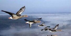这一天终于来临了,Moullec 启动超轻飞机的发动机,升上天空,小白额雁们紧紧跟在他周围,飞了一阵子之后,它们就开始自如地调整队形,并借助空气缓和体力了 ….