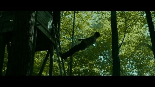 老警察让警察B去追逃走的两人,警察B被躲着树上的熊孩子推了下去。