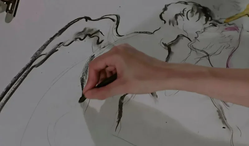凭借记忆,画酒吧有缘人的速写,有些许无处下笔,结果画着画着模特就换人了,一通电话打断了创作,灵感却不断涌现,完成作品后大舒一口气。