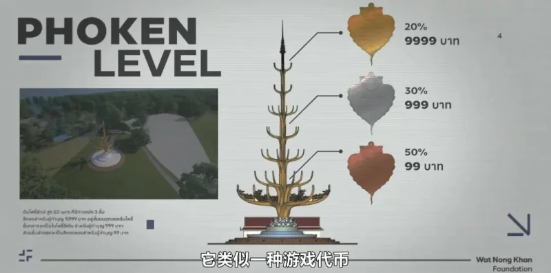 建造了一颗巨大的菩提树,供捐款人挂置菩 提 币,随着捐款数的增加,这颗巨大的菩提树也终将成为一个“打卡点”……