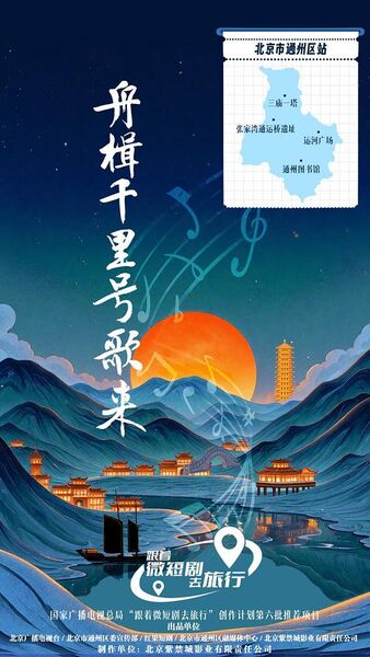 《舟楫千里号歌来》由北京广播电视台、北京市通州区委宣传部、红果短剧、北京市通州区融媒体中心、北京紫禁城影业有限责任公司出品,北京紫禁城影业有限责任公司制作,共30集,每集5分钟。取景地为北京市通州区,张家湾通运桥遗址、三庙一塔、运河广场、通州图书馆等地。讲述了音乐学院学子白佳彤与非遗传承人于本水因“船工号子”结缘的青春励志故事,展现了两代人携手传承非遗的温情与坚守,传递出运河文化的千年历史和精神内核。