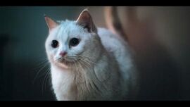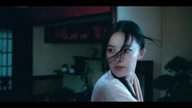 晚上女主戴着面具,去探查老鬼子和人商议,女武士发现房顶异状,出去看是男主痴傻着抱着黑猫,掩护女主。