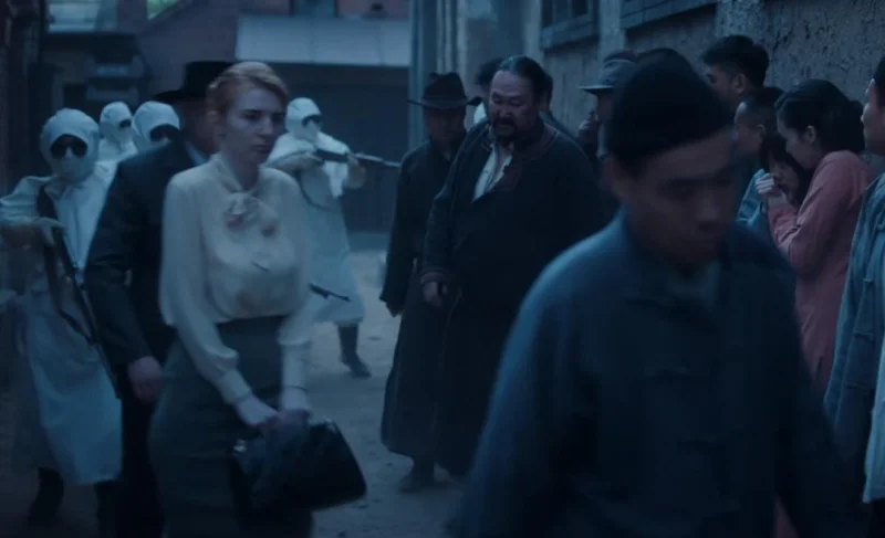 这个安排十分巧妙,更能看出导演对细节的把控,哈尔滨在当时被称为“东方莫斯科”,居住着大量的俄国人。他们的身份应该是“白俄流亡者”,大多是十月革命后逃离苏联的旧贵族、军官、知识分子及其后代。(从穿着上也很符合)他们失去了祖国(苏联不承认他们,他们也不认同苏联),在中国也没有公民权。这使他们成为了满洲国社会中最脆弱的群体之一(没有任何政府保护的白种人)。