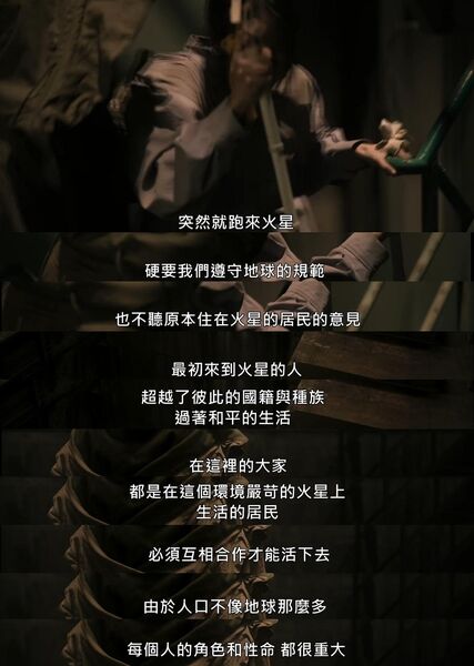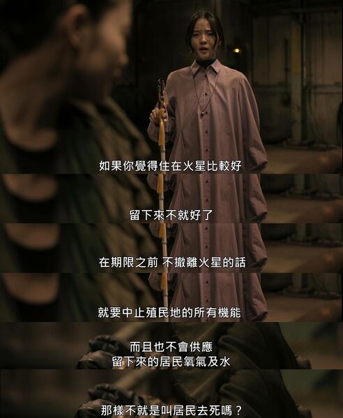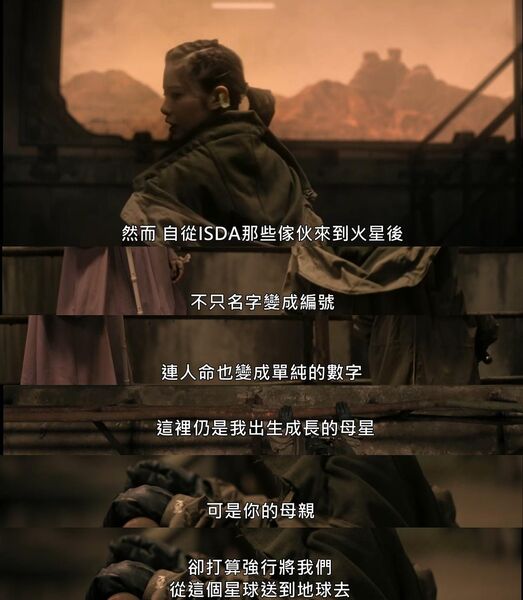 看点1:科幻设定很有趣,也很合理,是现实生活的辛辣讽刺。人类对火星的利用和如今的开采地球如出一辙。每个火星人需要植入一个身份卡方能算是有了“编制”,有了一个编号,从此,无条件听命于组织,组织才会给水和必要的食物,这人和机器也活的没啥区别了,那些没有身份的人,没有任何的资源,当火星人转移完毕的时候,他们只有死路一条。