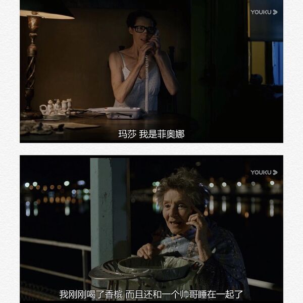 进入了姑姑家的菲奥娜,翻看着玛莎的相册,年轻时的姑姑与她的舞伴们是那样风华正茂,诺曼和她是多么相配,等等,刚刚参加过她葬礼的那位相片下面的唇印和je t'aime(法语我爱你)是太出乎意料了吧!原来她们才是一对。被姑姑爱情故事拨动心弦的菲奥娜正辗转难眠,突然接到了姑姑玛莎打来的电话。