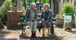 两个昔日的舞伴,早已白发苍苍,一起坐在墓地的长椅上跳了一支可爱的足部舞,仿佛回到了相恋的起点,那艘载着一对璧人的小船上,俏皮可爱又淡淡忧伤。一支舞罢,他又成了别人眼中,健忘却记得初见时她的样子的他;而她必须离开,她不想被困在养老院中终老余生。
