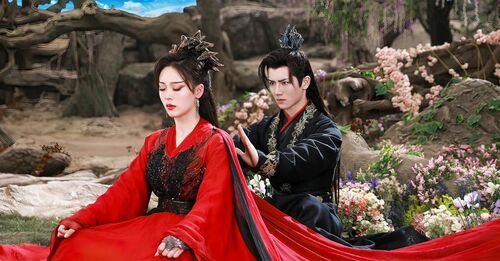 魔尊镜渊(李菲 饰)的人设本就非常带感。还生得一副俊俏的容貌,唇红齿白,眼波流动,经常放电。油嘴滑舌哄女人的功夫,别说浮生了,恐怕三界的女生在他的攻势下,都会乖乖就范。前世被神女兮云(明加加 饰)封印并救下,他就对神女萌生好感。今生再次被转世的浮生救回,还收他为徒,他的爱意藏不住了。