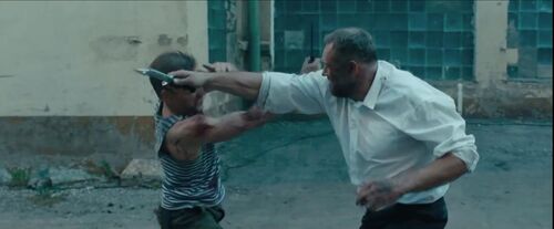 影片开始就是一段回忆,尼基塔和他的战友在执行任务,通过狙击步枪的瞄准镜发现自己这方的负责人是曾经杀害自己父亲的凶手,于是毫不犹豫的调转枪口,但在击发时被战友稍微碰了一下手肘,子弹擦耳而过,逃亡后的负责人招来了炮击,于是炮弹犁地后,战友死亡,在内疚中尼基塔退役,在这一段中战斗场面和俄罗斯男舞比较惊艳。