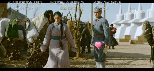 我说一下我印象深刻的情节,一个就是相对官兵平等的解放军队伍第一次进入这个什么苏尼特区,路上看到一个蒙古贵族样的胖子踹了门口叉干草的农奴一脚,然后发现解放军进来了,不屑的抬起头来,投来恶狠狠的目光。这个情节既是交代了当地的历史背景,进而表达作者理解中为什么必须由共产党领导内蒙独立这样的一种创作思想。也是展现了乌兰夫等人进入蒙古不被当地人接受的这样的一个剧情设定。而且我觉得这一段BGM的呼麦挺带感的,那种剑拔弩张、枕戈待旦的情绪一下就上来了。