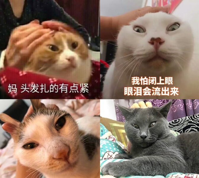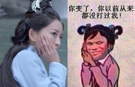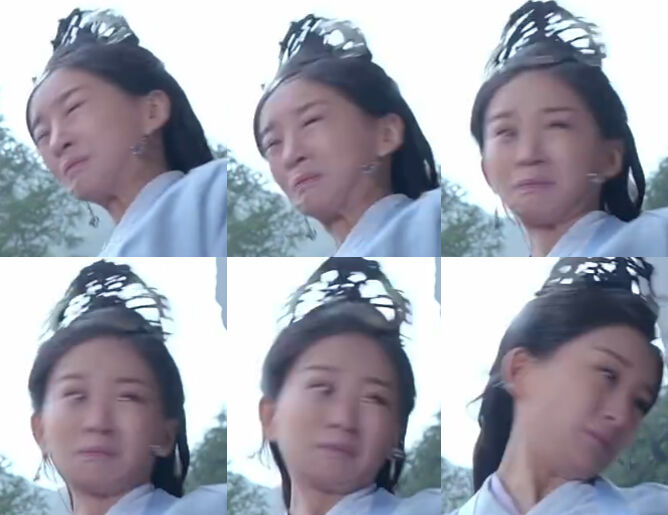 演员的表情应该是这样的:妈,头发扎得有点紧。