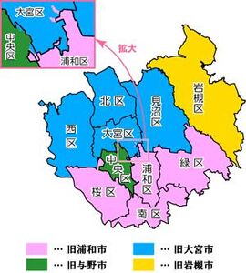 而「さいたま市」名字就是在2001年第一次合并的时候起的。