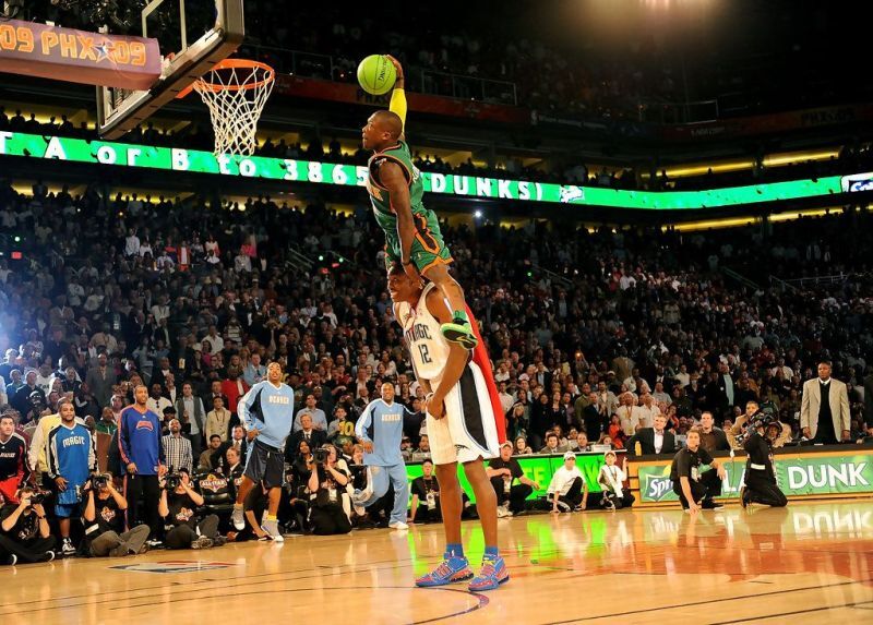 2009年,身高175cm的罗宾逊在NBA扣篮大赛中,越过2.1米的德怀特·霍华德,结结实实地灌入一球。