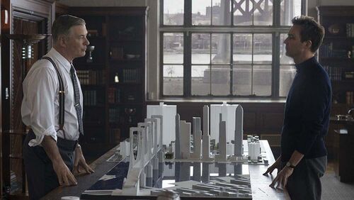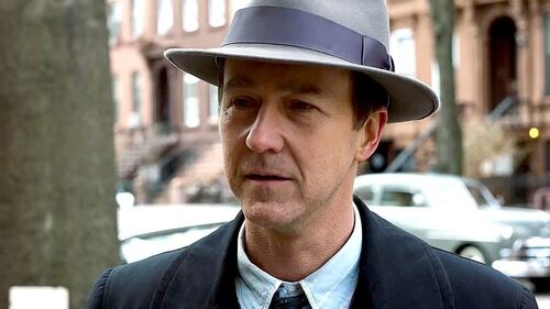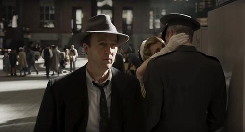 时间设定上的大胆改编,可能是出于诺顿本人对50年代的偏爱,或是想从文本角度以更合理的环境展开黑色侦探的故事,也可能是为纽约城市历史和阴谋论这一宏大议题创造更适宜的土壤。但从最终成片来看,这个决定可能算不上明智。时间上的改动让诺顿在影片中无法挖掘原著的后现代气质,而诺顿还原的1950年代纽约也没有达到最好的效果。